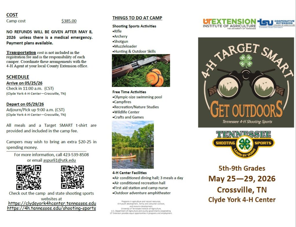 4-H Target SMART Camp is a program of Tennessee 4-H Shooting Sports. It is for youth who have